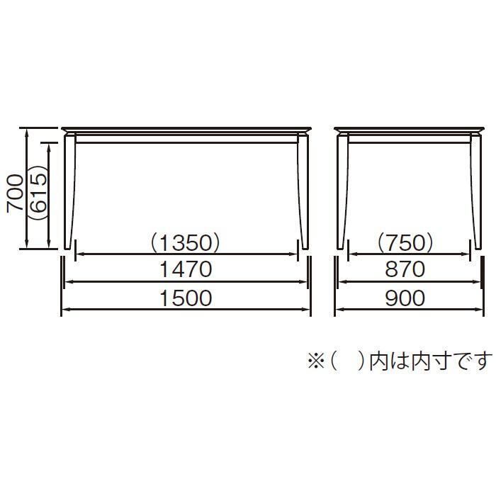 W150×D90×H70cmの標準的なダイニングサイズで、 4人でゆったりと食事を楽しめる設計。