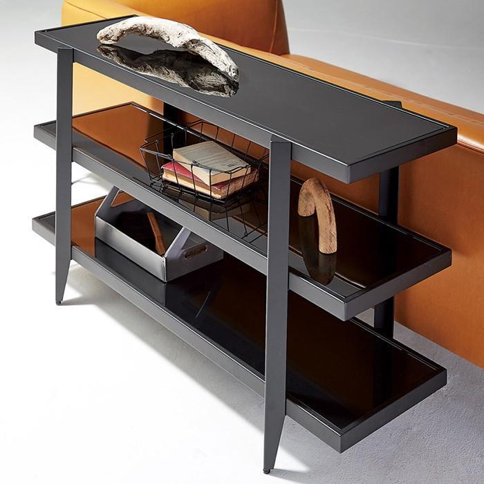 チヂミブラックのスチールフレームと 強化ガラス棚板の組み合わせで、 モダンで洗練された印象を演出します。