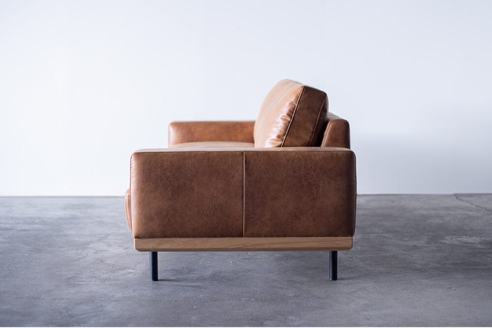 オイルレザーの風合いを再現した厚みのある スーパーレザーテックスが上質なソファの雰囲気を一層引き立て、 素材感がありながら主張しないデザインで 様々なインテリアに自然に溶け込みます。