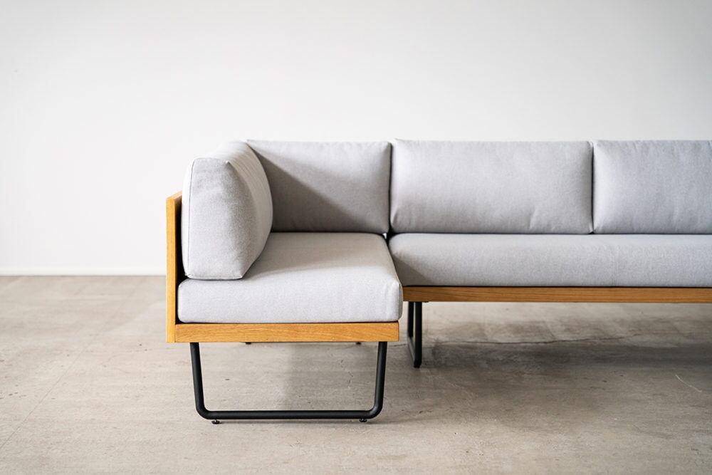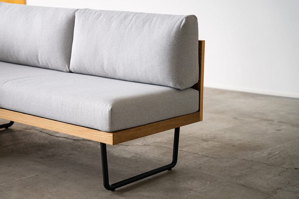 フレームには、美しい木目が特徴のオーク突板(オイル仕上げ)を使用しており、ソファ背面から見てもその美しさが際立ちます。