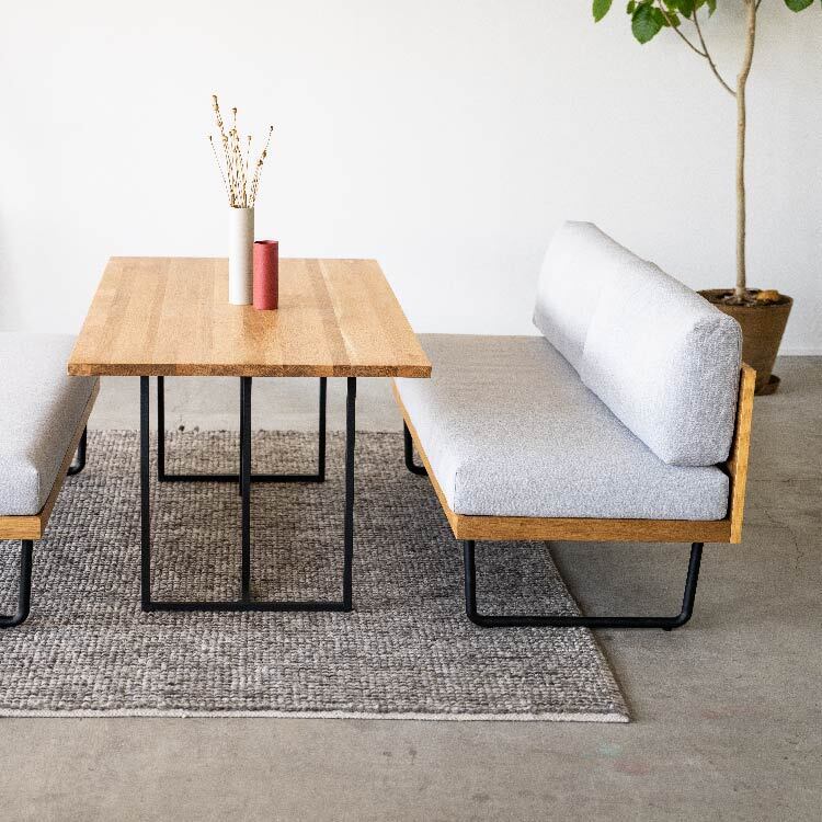 I.JOHがご紹介するNOWHERE LIKE HOMEのソファ SUK(スーク)アームレス 150は、リビングでのくつろぎとダイニングでの食事を両立する、新しいスタイルのリビングダイニングソファです。