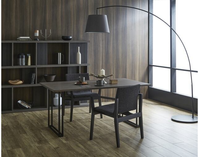 【オークの木目を活かしたグレイッシュカラー。さまざまなテイストにマッチする上質なテーブル】