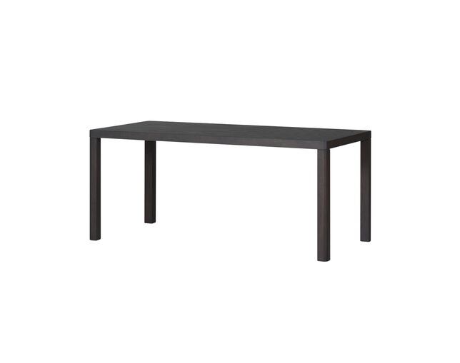 厚みのある天板と脚にボリュームを持たせながらも、幕板をなくすことでスマートな見た目と椅子の出し入れのしやすさを両立。