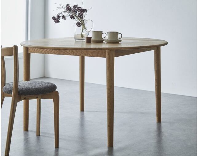 今回は、4人でもゆったりと座れる直径100cmのサイズ・OAK(ホワイトオーク)をご紹介します。