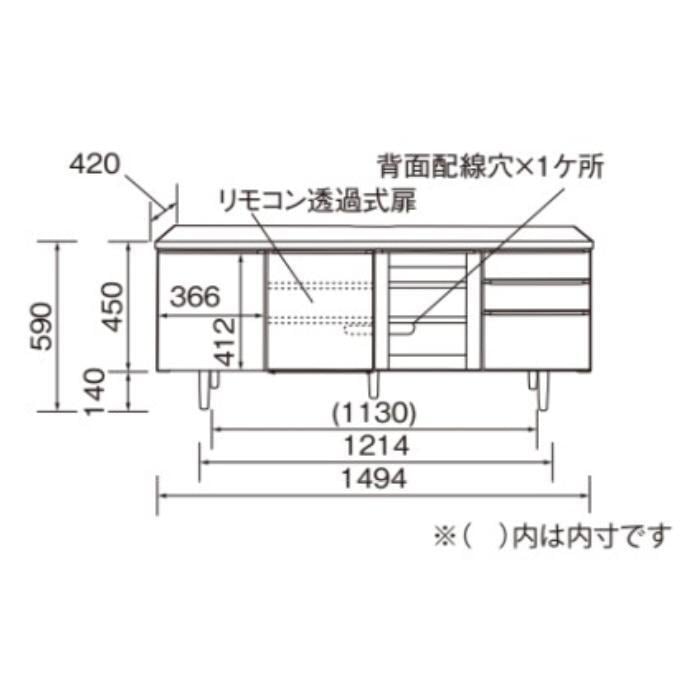 中央の収納部は、閉めたままでもリモコンの電波が届く、リモコン透過式のガラス扉を採用しています。