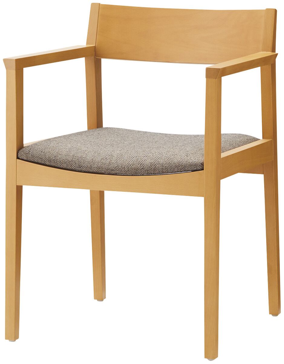 【マンタA (肘付)】チェア QUON Manta(張地C)| 肘掛け付きでくつろぎをプラスした、店舗・業務用木製椅子