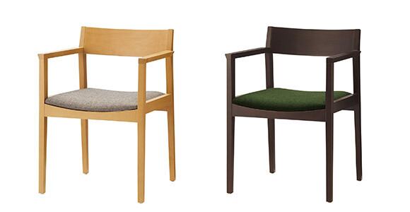 【マンタA (肘付)】チェア QUON Manta(張地E)| 肘掛け付きでくつろぎをプラスした、店舗・業務用木製椅子