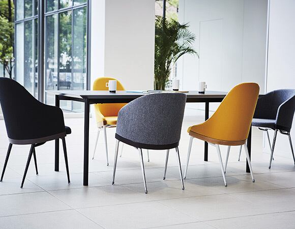 【軟質モールド成型が身体を包み込む。統一感のあるデザインのチェア】