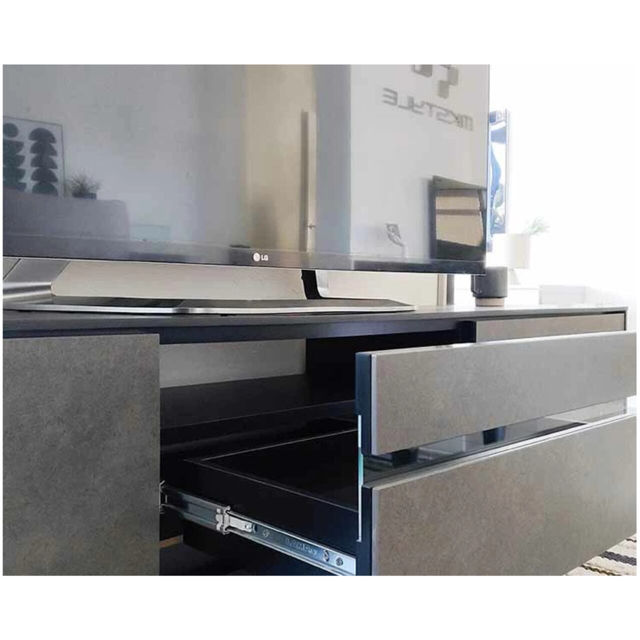 【セラミックと木目の融合。空間をモダンに彩るツートンカラーテレビボード】
