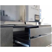 3つの引き出しはフルエクステンションレールを採用しており、奥までスムーズに引き出せるため、収納物の出し入れも簡単です。