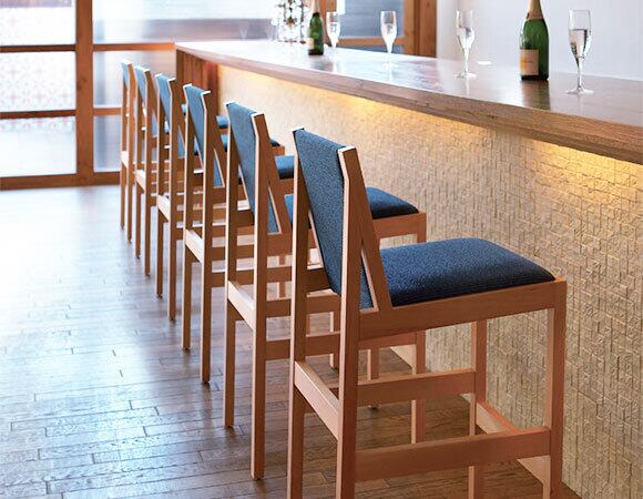 【スタイリッシュな佇まい。カウンター空間に溶け込む上質な木製チェア】