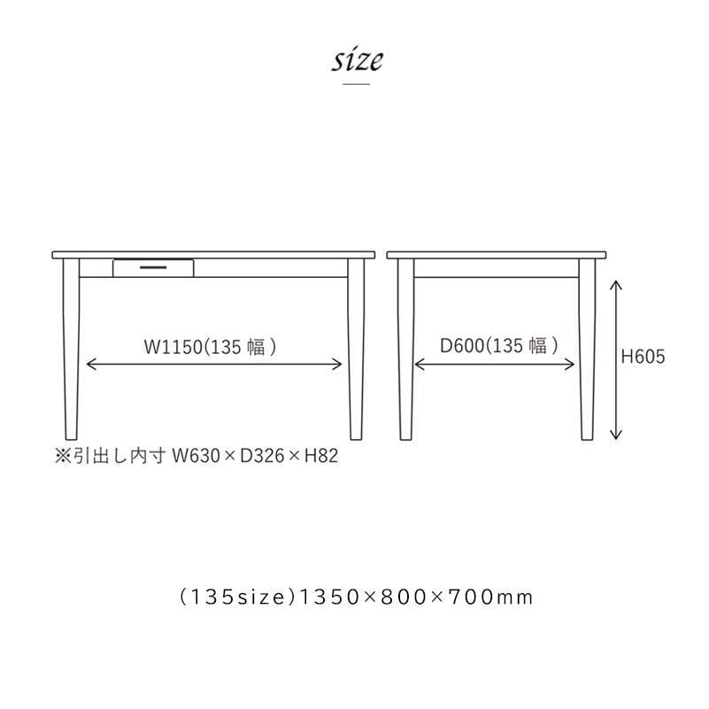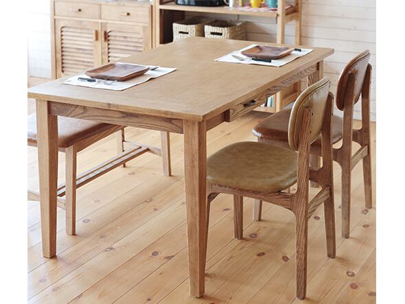 【fudge (ファッジ)】ダイニングテーブル 135cm nora.(ノラ) | 温もりあふれるオーク材と便利な引出し付き | 幅135cm