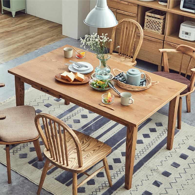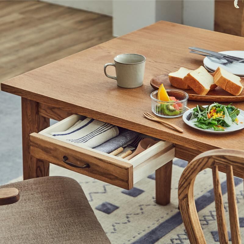 【木の優しい風合い。暮らしに溶け込む引出し付きファミリーテーブル】