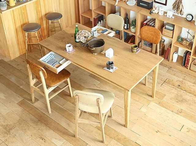 【木の優しい風合い。家族でゆったり過ごせる引出し付きテーブル】