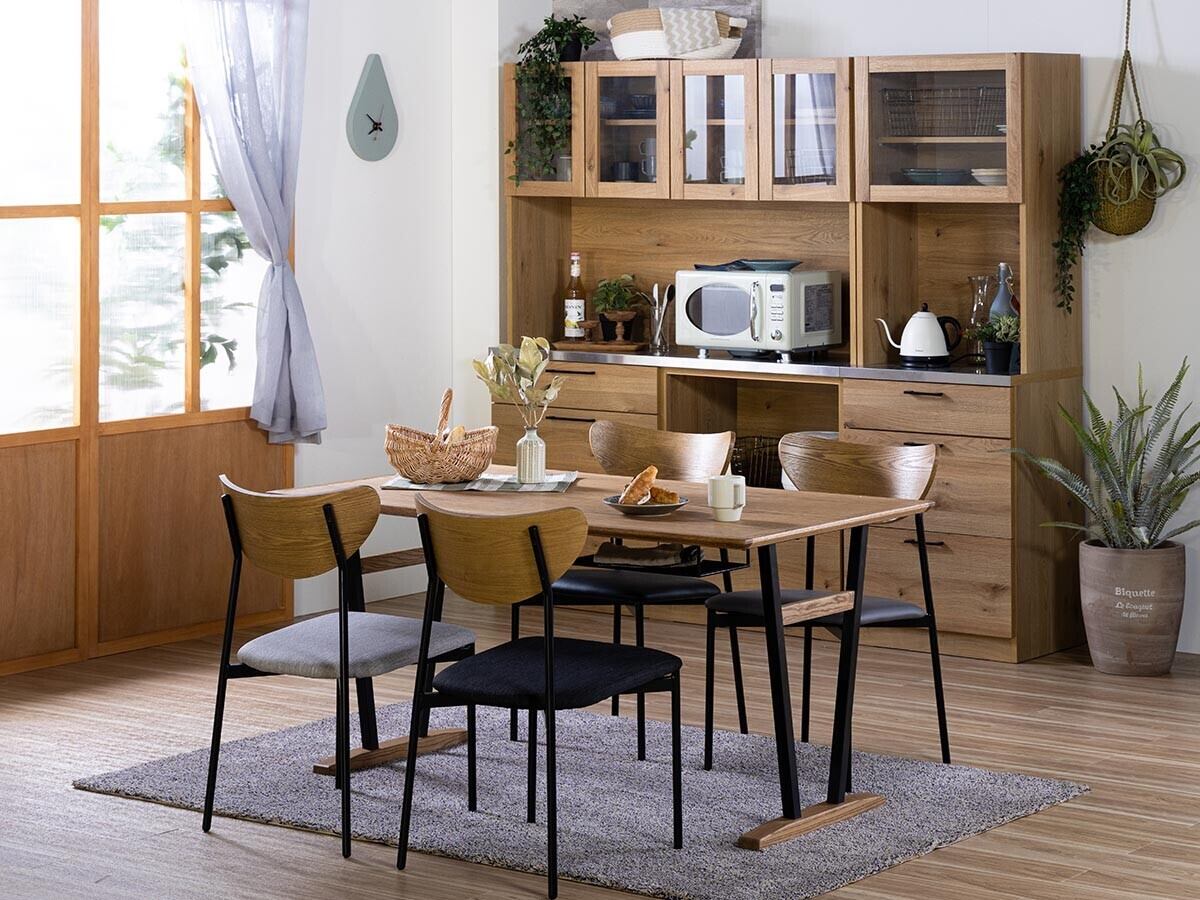 ■ 石目ブラック (BK):クールな石目調のメラミン天板です。熱や水、汚れに強く、お手入れが簡単なので、日々の食事も気兼ねなく楽しめます。