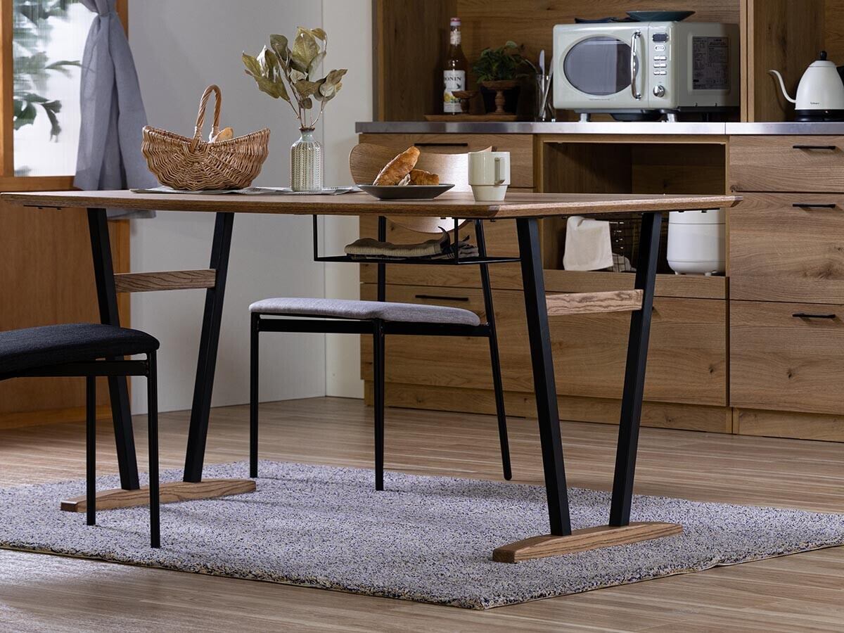 検索キーワード:nora, ノラ, IRORO, イロロ, ダイニングテーブル, カスタム, V脚, アイアン脚, 木下駄, 160cm, 石目ブラック, ナチュラル, 関家具, I.JOH, 4人用, 6人用, 家族