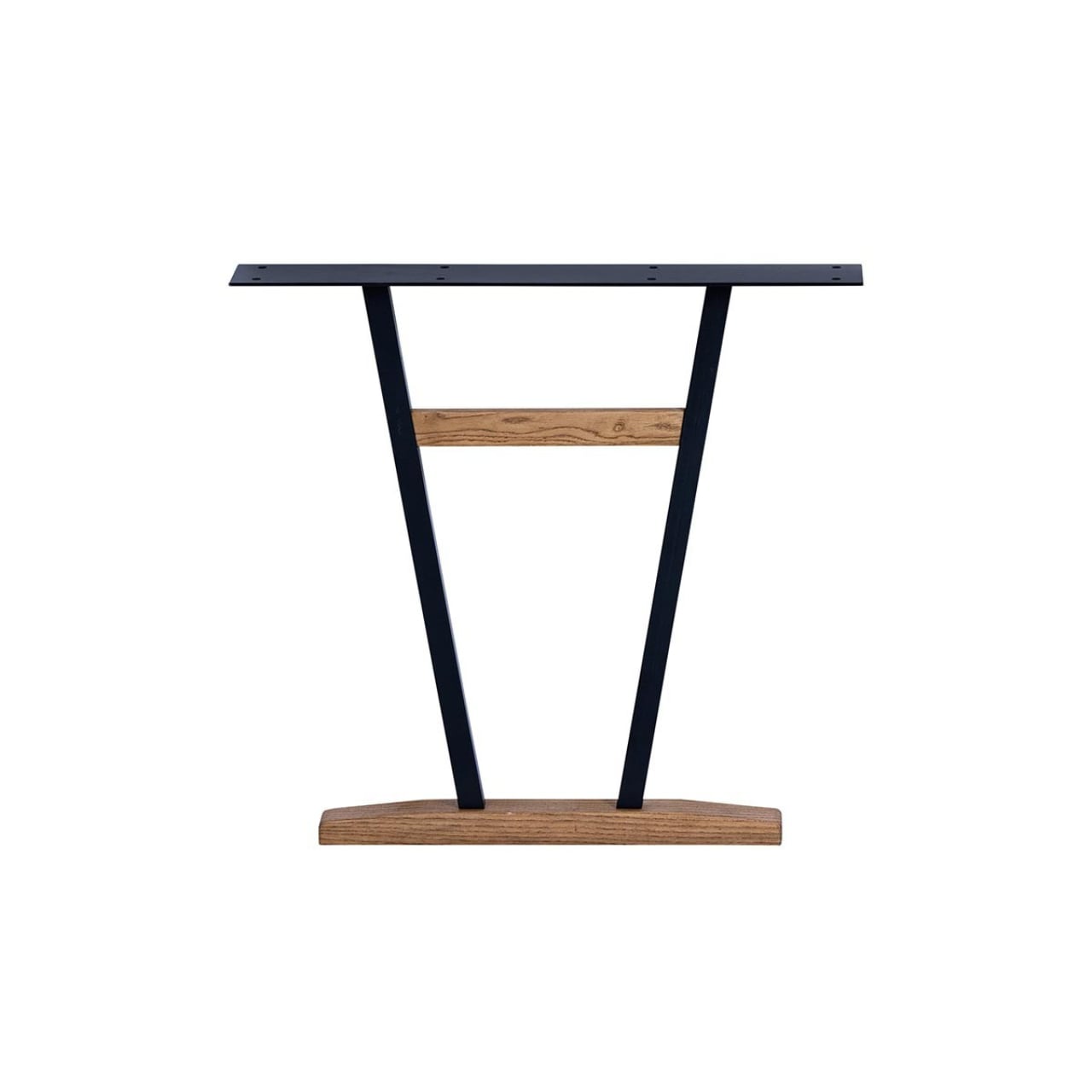 ■ V脚:黒鉄脚に木下駄を履かせることで、無骨になりすぎないよう温かみと遊び心を加えたデザインです。モダンとナチュラルの要素を兼ね備え、ユニークな個性を放ちます。