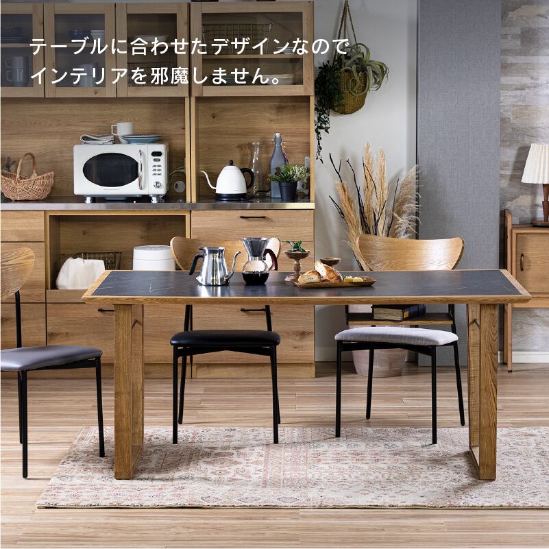 ■ ナチュラル×アイアン:温かみのある天然木とアイアンを組み合わせたデザイン。木の天板と相性が良く、ナチュラルな雰囲気を高めます。
