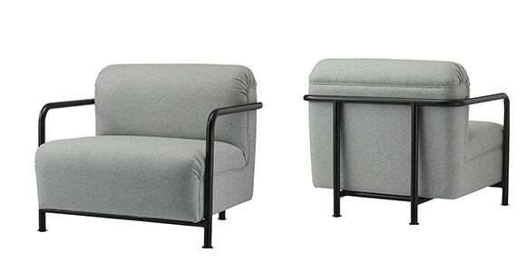 背もたれ、座面、そしてスチールフレームのすべてのパーツに丸みをつけ、少し大きめのサイズに仕上げることで、視覚的にも座り心地もやわらかさを演出しました。