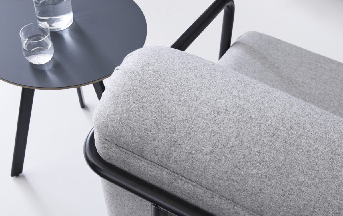 背もたれ、座面、そしてスチールフレームのすべてのパーツに丸みをつけ、少し大きめのサイズに仕上げることで、視覚的にも座り心地もやわらかさを演出しました。