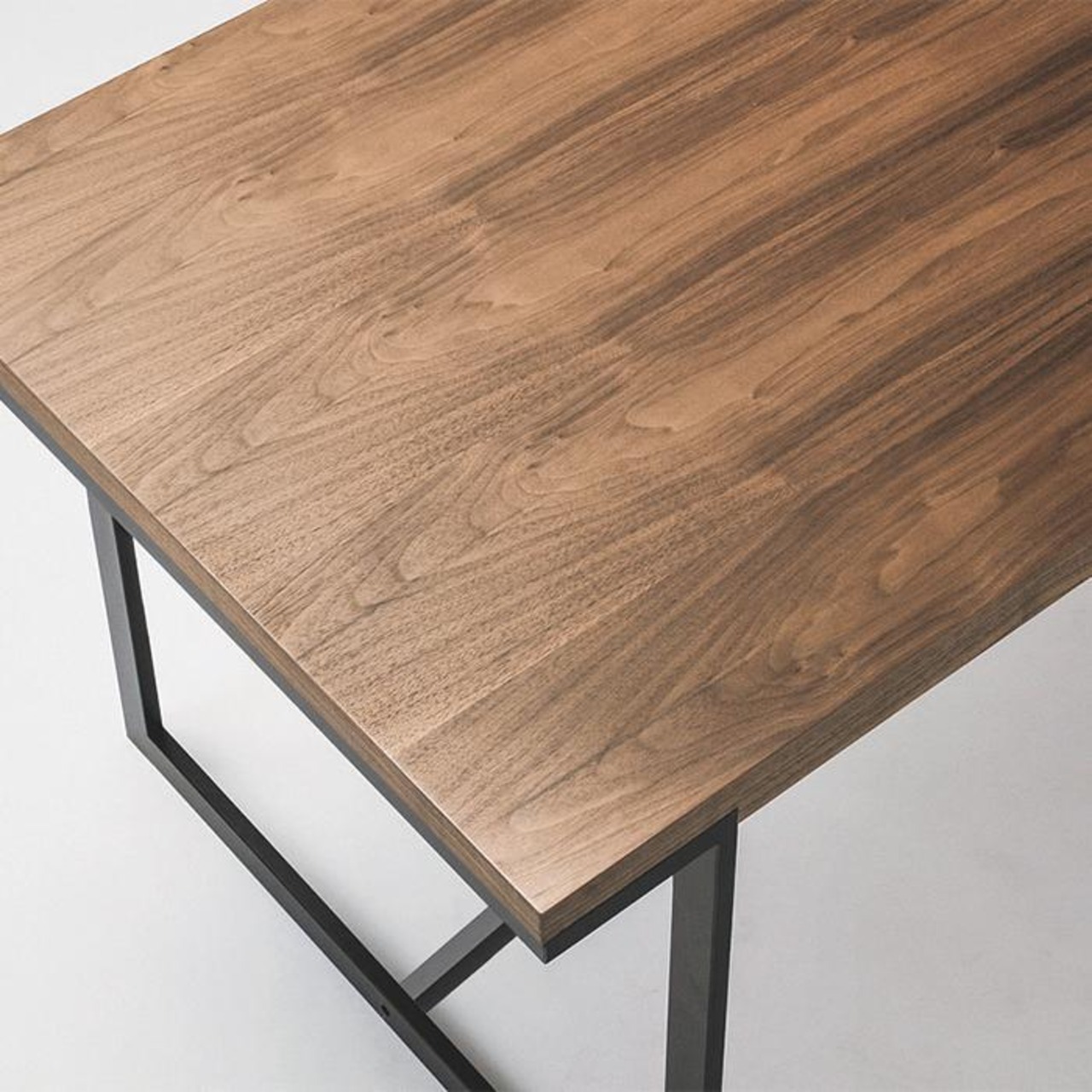 天板のウォールナットとサンドブラックスチールのコントラストが、テーブル全体のデザインを引き締めます。