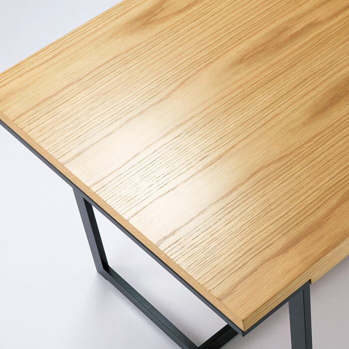 天板のホワイトオークとサンドブラックスチールのコントラストが、テーブル全体のデザインを引き締めます。