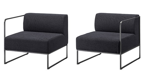 16mm角の細身なスチールフレームを活かしたシャープなフォルムはそのままに、片肘デザインにすることで、複数台を連結したり、同シリーズの肘なしイスと組み合わせたりと、空間に合わせた自在なレイアウトを可能にします。