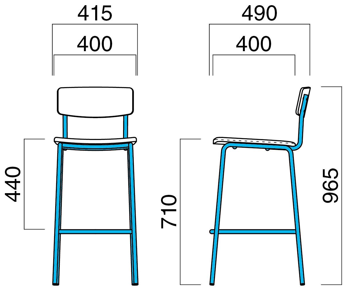 ■ 座面高: 張り座のため、座面高はSH710mmで、一般的なハイカウンターやハイテーブル(高さ950~1000mm)に最適な高さ設定です。