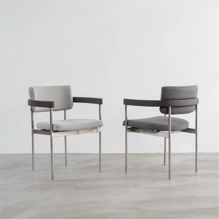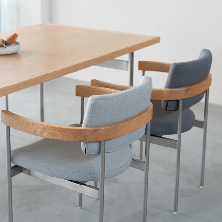 ■ フォルム: クールなステンレス、温かいオーク無垢材、柔らかなファブリックという異素材の素材感と質量感のバランスが、シンプルでありながらユニークなフォルムを生み出します。