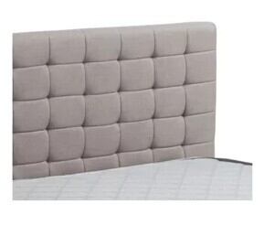 ヘッドボードとフレーム全体がグレーの布張りで仕上げられた、モダンで洗練されたデザイン。