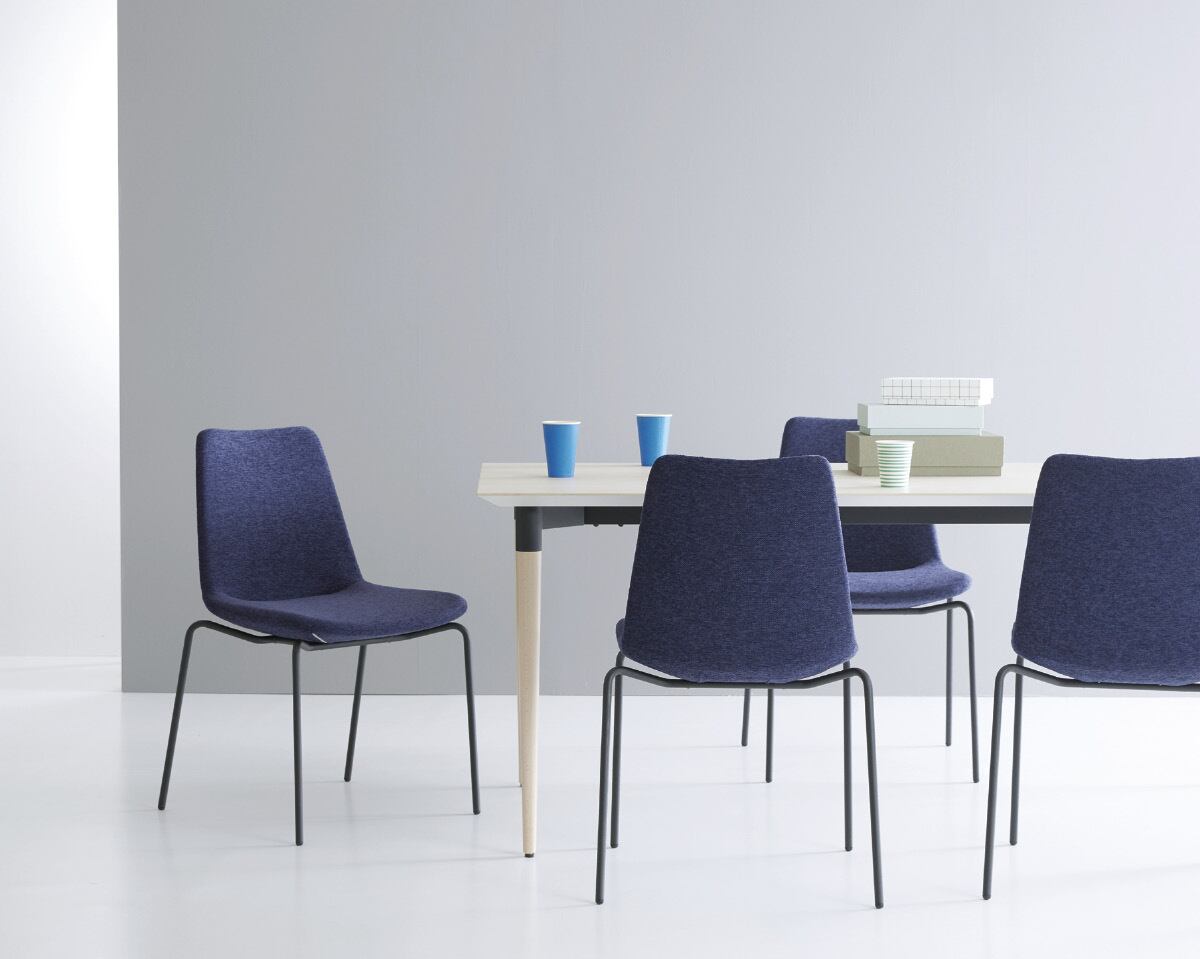 【流れるようなR形状を活かしたシンプルなデザイン。スタッキング可能でレイアウト変更に柔軟に対応】