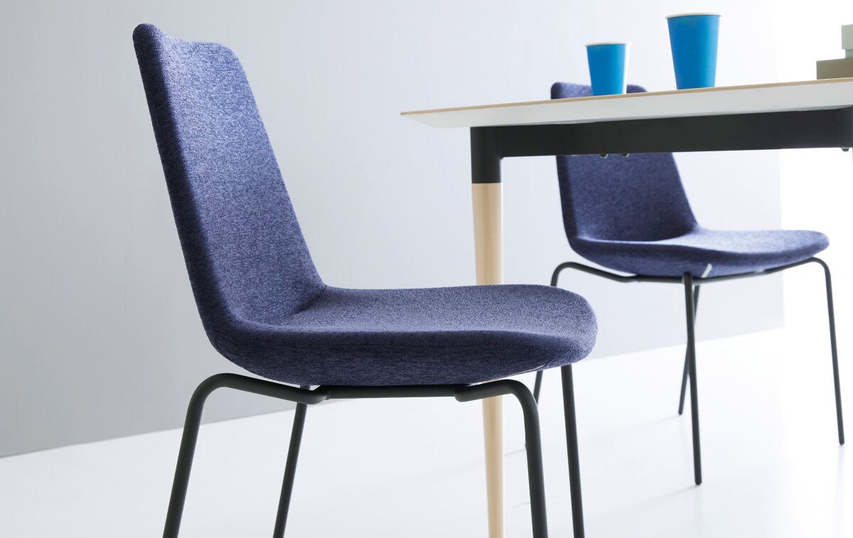 【流れるようなR形状を活かしたシンプルなデザイン。スタッキング可能でレイアウト変更に柔軟に対応】