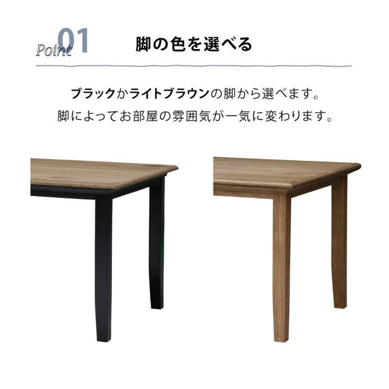 ■ 素材: NA(天板:オーク突版、脚:オーク無垢)、BK(ニレ材)