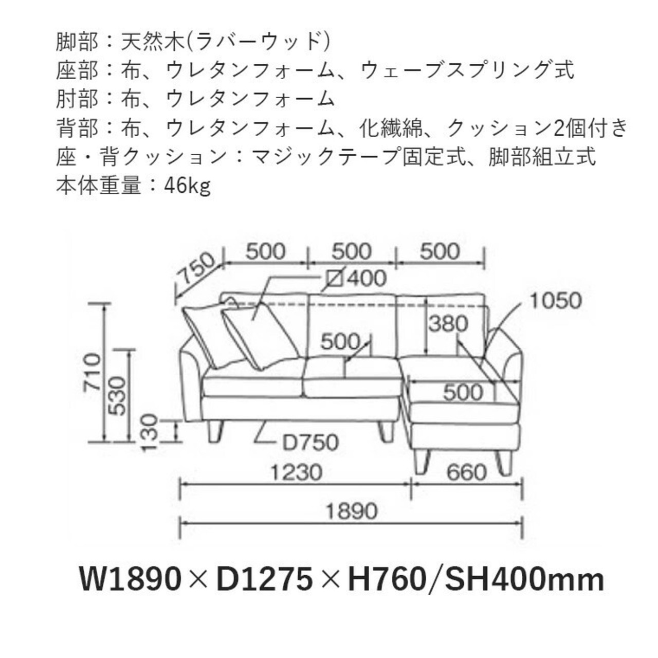 ■ 検索キーワード: 桜屋工業, CHERRY, HOMEDAY, LS-428, カウチソファ, スチール脚, モダン, I.JOH