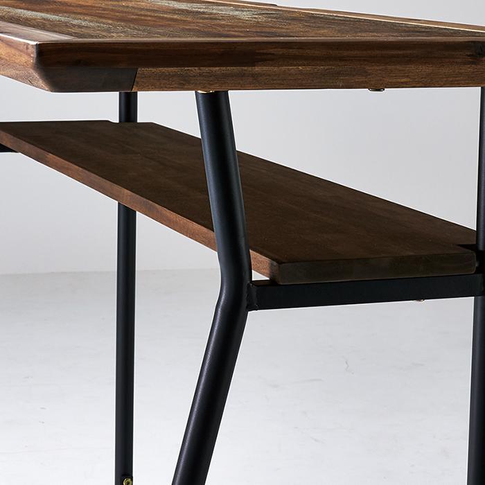 【ダイニング&ワークスペースに。ダメージウッド柄天板と棚が多目的に活躍する省スペースカウンターテーブル】