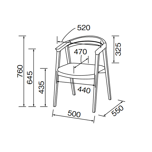・幅(W):520mm / 奥行(D):550mm / 高さ(H):760mm
