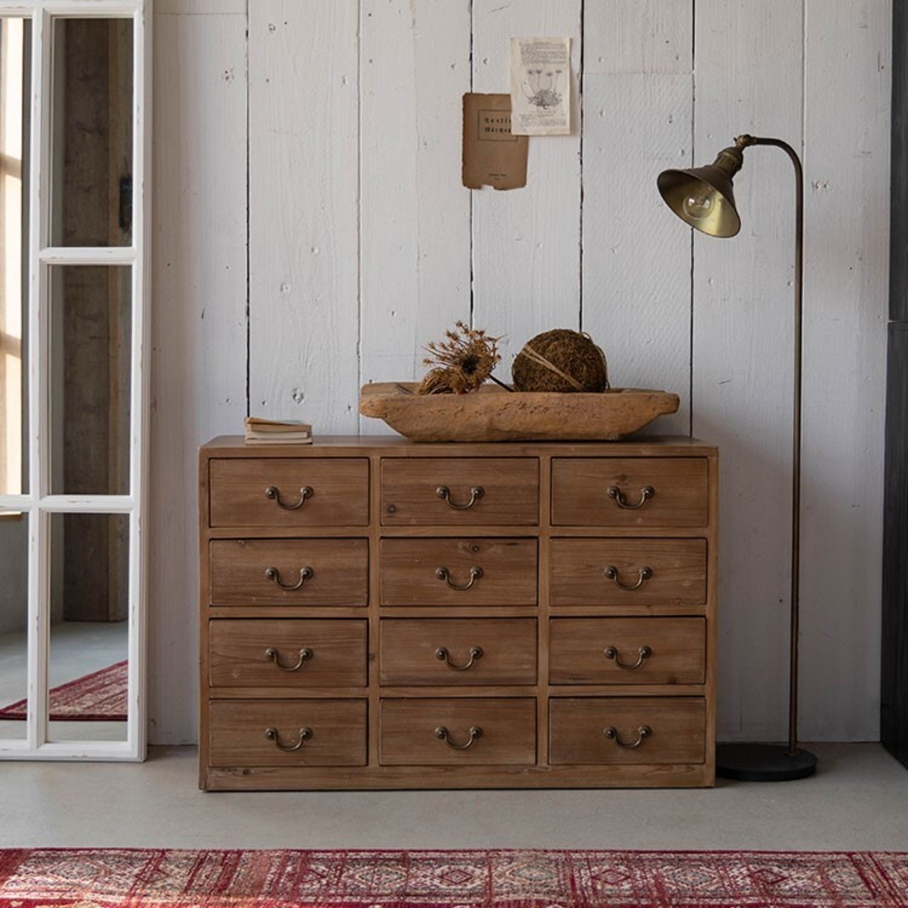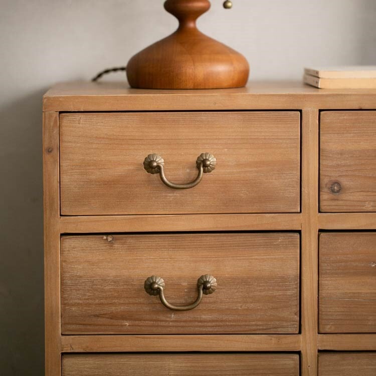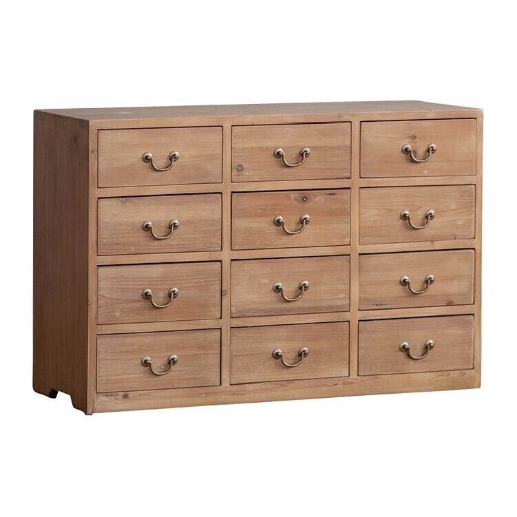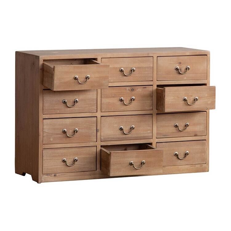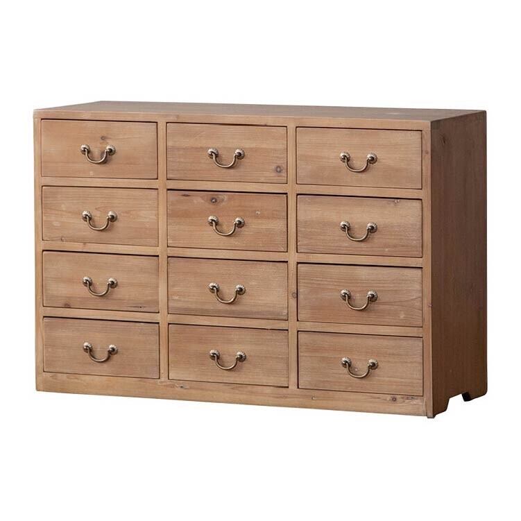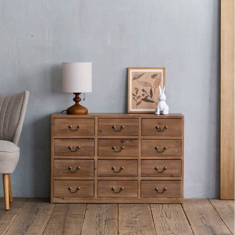 杉古材の風合いと12杯の引き出しによる優れた収納力が魅力のチェスト】