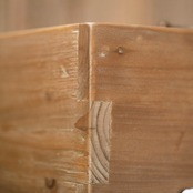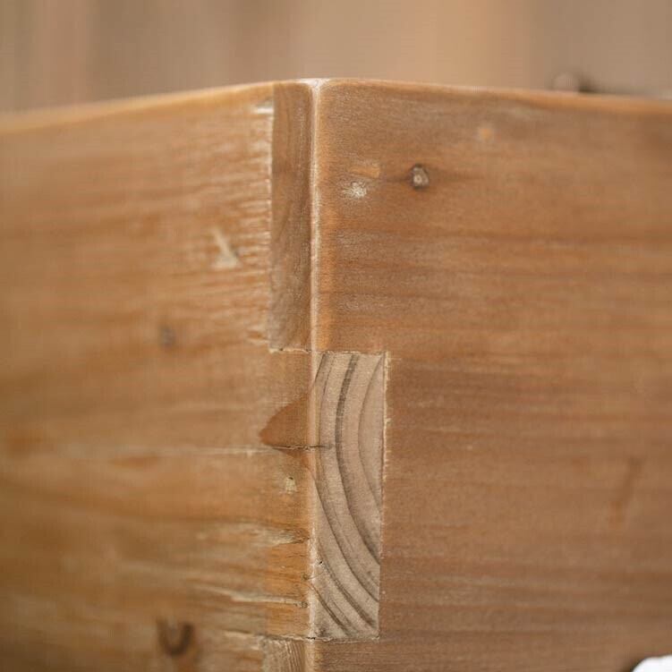 細かい部分にもデザイン性を持たせ、古材の風合いと相まって、チェスト全体の存在感を際立たせています。