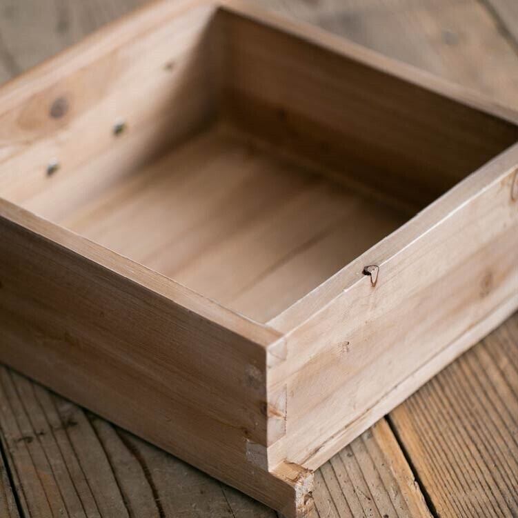本体には杉古材を使用しており、独特の風合いを残すため、色ムラや釘跡、傷などをあえて味わいとして残しています。