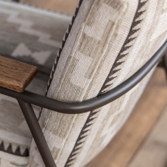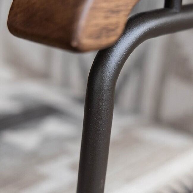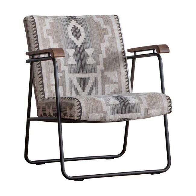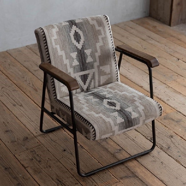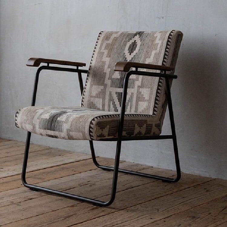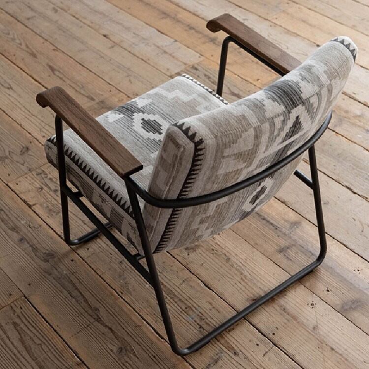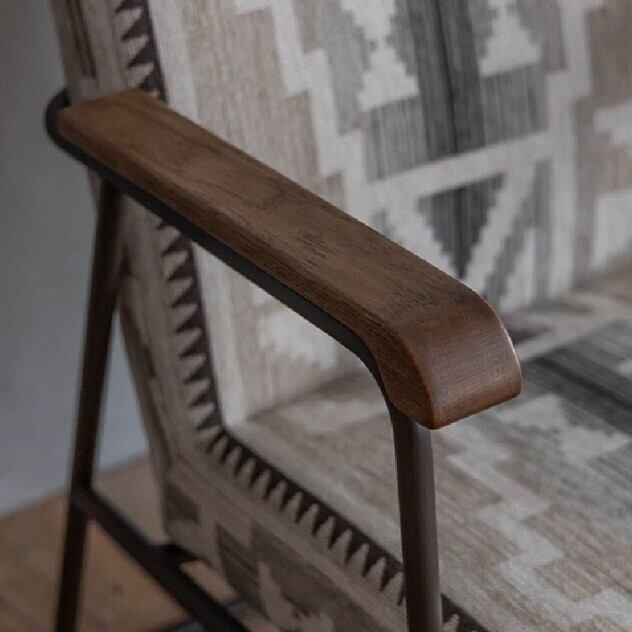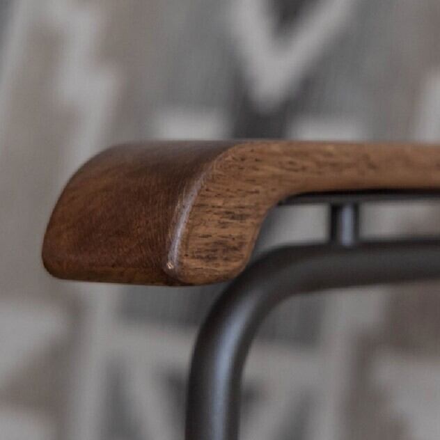 ◇ ヴィンテージスタイルの素材とデザインフレームには武骨なスチール、肘掛けには温かみのある**オーク材(オイル仕上げ)**を組み合わせたヴィンテージスタイル。