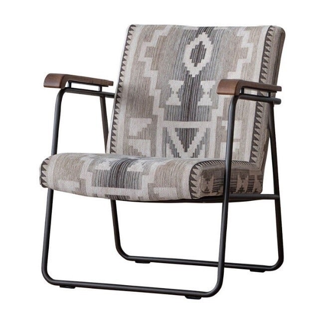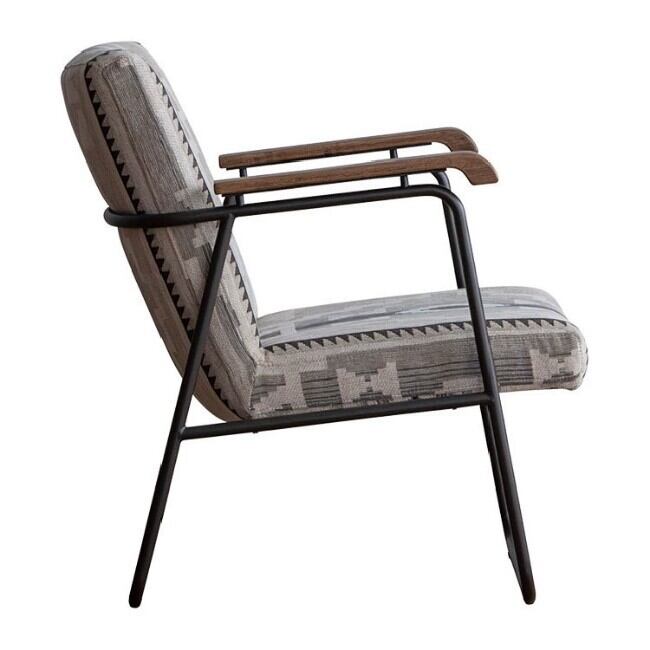 スチールフレームと木製アームを組み合わせたヴィンテージスタイルの1人掛けソファ】