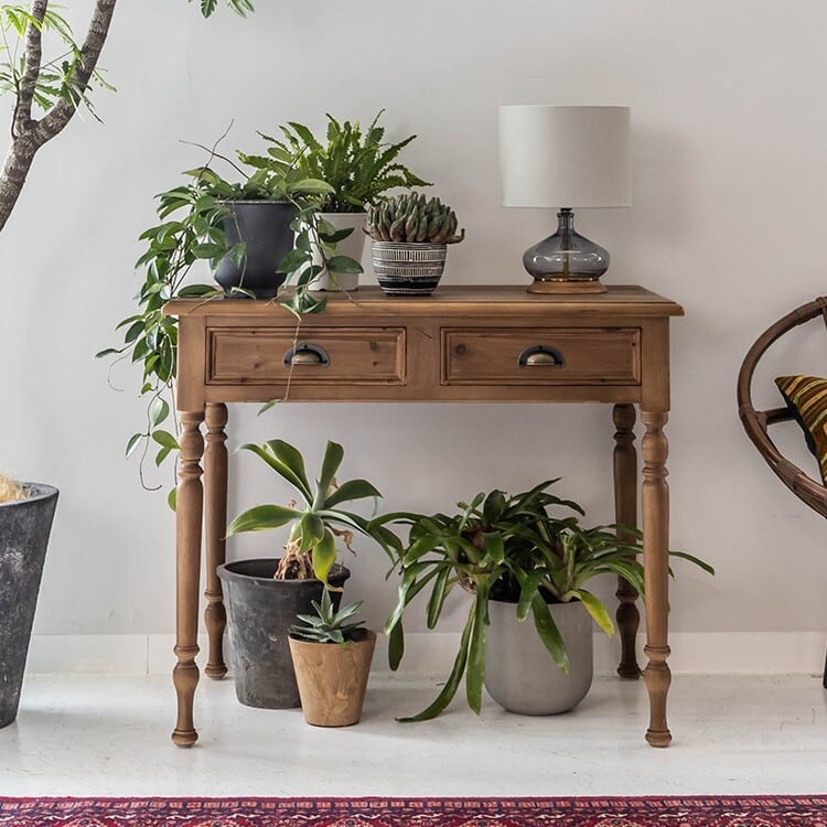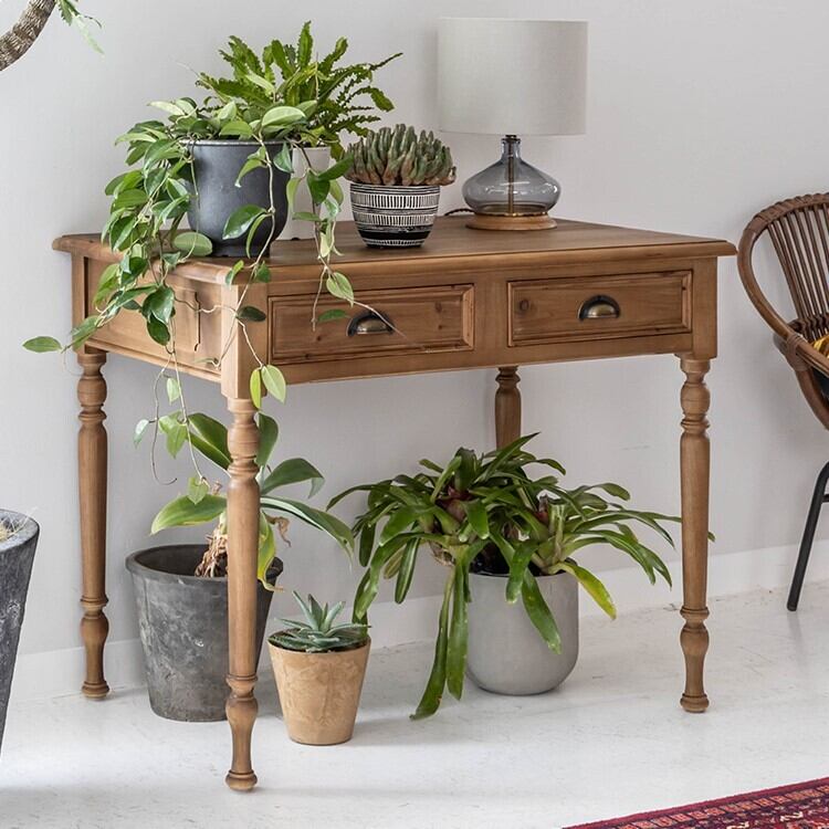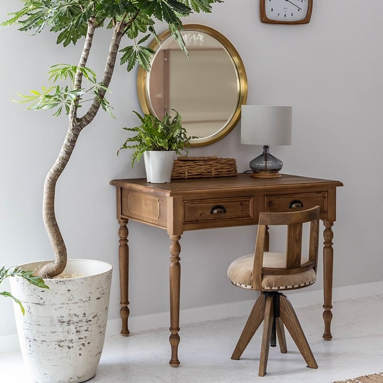 PC作業や書き物をするデスクとしてだけでなく、オブジェや観葉植物、照明などを飾るコンソールテーブルや、**化粧台(ドレッサー)**としてもおすすめです。