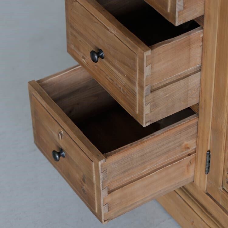 本体や前板には杉古材を使用し、水性塗装/ワックス仕上げが施されています。