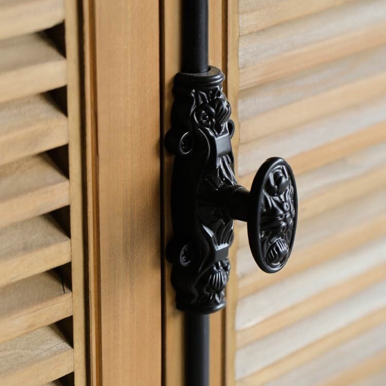 扉をしっかり固定するためのローラーキャッチを備え、台座にも細かなデザインが施されており、安定性と見た目の美しさを兼ね備えています。