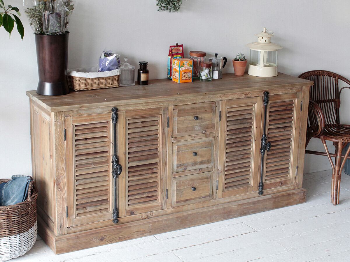 I.JOHがお届けするCRUSH CRASH PROJECTの**ルーチェ2 サイドチェスト (175cm)**は、ノスタルジックな雰囲気を持つアンティーク調のデザインと、大容量の収納力を兼ね備えたワイドサイドチェストです。