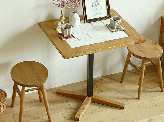 ■ 材質: タイル(天板)、アッシュ材(天板フレーム)、アイアン(脚部)