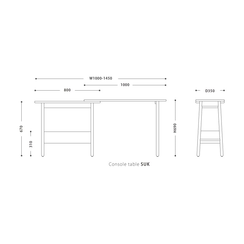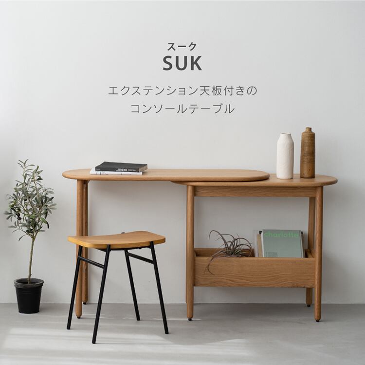 I.JOHがお届けするNO WHERE LIKE HOMEの**Console Table SUK(スーク)**は、北欧デザインのエッセンスを感じさせる丸みを帯びたディテールと、実用的なエクステンション機能を両立させた一台です。