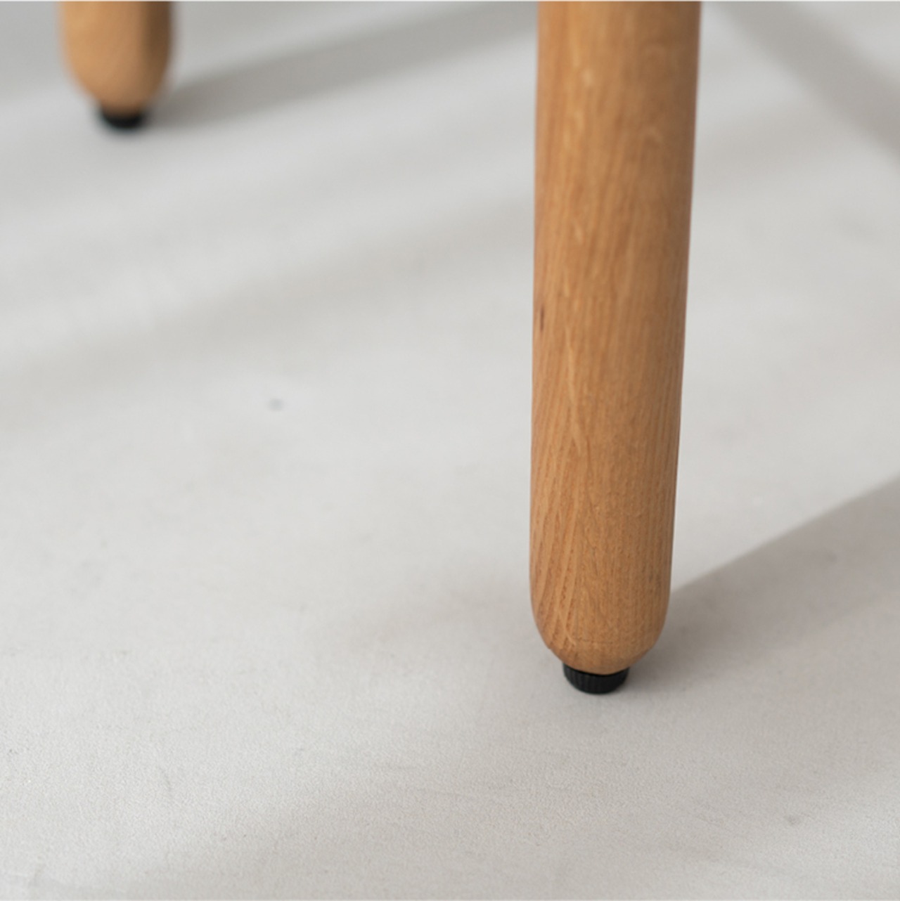 角を丸く削り出すことで、無垢材ならではの力強い質感の中に、手触りの良さと視覚的な柔らかさを生み出しています。