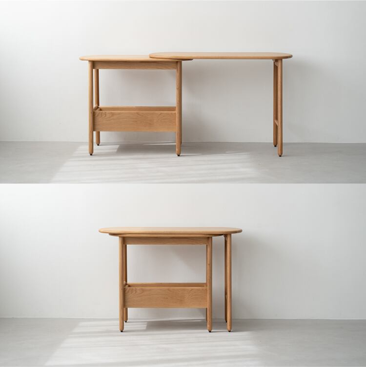 スライド式の天板でシーンに合わせて姿を変える、オーク無垢材のコンソールテーブル】