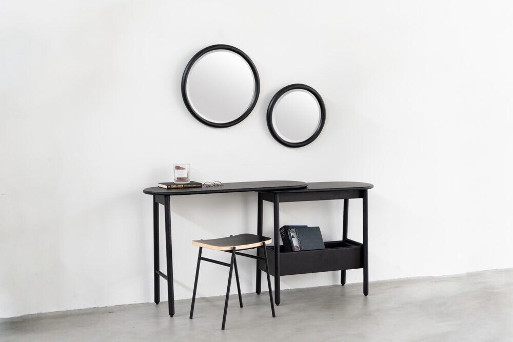 奥行きが350mmとスリムなため、リビングの壁際はもちろん、玄関先の飾り棚(コンソール)やワークスペースのデスクとしてなど、場所を選ばず多目的に活用できます。